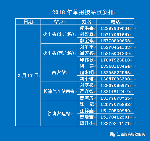 01 考生网上信息确认 确认时间: 3月15日上午9:00-3月17日上午12:00止 确认网址:http://120.203.222.74:79/studentlogin.aspx 请考生尽快登录确认,学校将根据网上确认结果进行考务安排,逾期未确认信息而影响正常参加考试,后果自负。 02 考生领取准考证 考生完成信息确认提交后,持本人身份证到我校实验楼招生就业处领取准考证。 3月16日17点以前网上确认者,于3月17日上午9点30分起领取 3月16日17点以后网上确认者,于3月17日下午3点起领取 03 考试时间 2018年3月18日 上午:语 文 9:00-11:00 下午:数 学 13:00-15:00 综合技能 15:20-16:20 04 考试地点 学校实验楼和第五教学楼(以准考证标示的考场为准) 05 成绩查询 2018年3月21日登陆http://120.203.222.74:79/studentlogin.aspx 查询考试成绩 06 拟录取查询 2018年3月22日登陆http://120.203.222.74:79/studentlogin.aspx 查询拟录取情况 06 录取结果查询 2018年3月29日-4月3日登陆http://120.203.222.74:79/studentlogin.aspx查询录取结果 06 事项说明 此次单独招生是采取网上系统确认,请各位考生务必及时登陆http://120.203.222.74:79/studentlogin.aspx系统(此系统为PC版,只能使用电脑进行操作)确认《考试承诺书》。按照准考证上的单招提示时间安排进行:成绩查询、拟录查询、录取确认,学校一律按系统数据作为录取依据。请各位考生一定要妥善保管好身份证和密码,切勿泄露。 鉴于此次单招考试考务组织和接待工作任务大,学校宿舍无法安排,请考生提前做好住宿预订。经学校研究,原方案考务费100元收费取消。 由于报名学生较多,学校周边住宿条件供应有限,为了便于考生可以提前预定好宾馆,现提供学校附近以下宾馆及联系电话供参考,请各位考生提前做好网上或电话预订,住宿费用自理。 1、欣旺宾馆:校内商业街 电话:15170025633 黄经理 2、龙鼎商务酒店:新建区红湾公路工业路口新光绿洲酒店对面 电话:079183222255、83222277 3、鑫华宾馆:出学校北面狮子门左走500米龙潭村宾馆一条街 电话:13870824212 万老板 4、喜洋洋宾馆:出学校北面狮子门左走500米龙潭村宾馆一条街 电话:15079595057 左老板, 5、鑫龙宾馆:出学校北面狮子门左走500米龙潭村宾馆一条街 电话:15970519265 夏老板 6、黄金岛宾馆:出学校北面狮子门左走500米龙潭村宾馆一条街 电话:18079175397 陈老板 7、龙翔宾馆:出学校北面狮子门左走500米龙潭村宾馆一条街 电话:18179171059 林老板 8、兴和宾馆:出学校北面狮子门左走500米龙潭村宾馆一条街 电话:13661731077 9、凯凯宾馆:出学校北面狮子门左走500米龙潭村宾馆一条街 电话:13641731013 10、佳源宾馆:出学校北面狮子门左走500米龙潭村宾馆一条街 电话:13699505953 11、旺辉宾馆:出学校北面狮子门左走500米龙潭村宾馆一条街 电话:15270957980 熊老板 12、鑫源宾馆:出学校北面狮子门左走500米龙潭村宾馆一条街 电话:18162101857 3月17日早上8:00-下午6:00学校在南昌火车站、高铁西客站、长途汽车西站、徐坊客运站会统一安排车辆接往学校,3月18日下午4:30在实验楼门口会有车辆返程车站。 于红谷滩配套中心乘坐213.247.公交车至丁香南路口下车即到;在市内于省体育馆、阳明路口、儿童医院站乘227路,于坛子口、洪城路乘238路,于八一桥头乘213路公交车直达,于火车站乘169路公交到工业三路站200米即到、西站乘巴士9号线到工业四路200即到。 学校位于江西省南昌市昌北经济开发区丁香路。导航搜索为:江西旅游职业学院昌北校区。 因学校单招考试期间进出车辆较多,车流量大,学校将对校内部分道路实行交通管制,请各自驾车主配合学校保卫部门工作人员,按指定场所有序停放车辆。 学校地址:南昌经济技术开发区丁香路1号 学校网址:http://www.jxlsxy.com 招生网址:http://zsb.jxlsxy.com 招生电话:0791-83771544、83771566、83771544(兼传真) 请广大考生不要相信骗子所谓有考试答案或确保录取的谎言,轻信既损失钱财,又影响你的正常考试,如遇此类情况,可拔打0791-83771900、83771544、83771987举报或投诉。顺祝考试取得圆满成功!