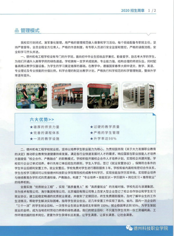 德州机电工程学校始建于 一九九四年, 系山东省人民政府批准的全日制普通中专。学校先后被国家、省、市授予“省部级重点学校”、“首批国家级重点中专学校”、“全国学校规范化示范单位”、“全国创建平安校园示范学校” 、“山东省农村劳动力转移阳光工程培训基地”、“山东省省级文明单位”等殊荣。