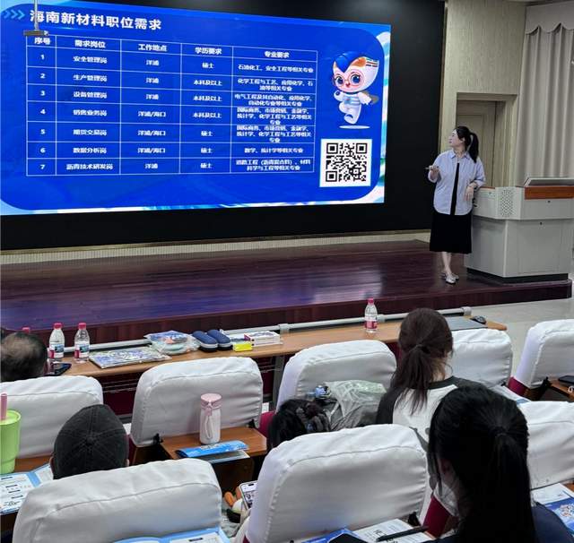 招聘会前夕,京博(海南)新材料有限公司、上海中远海运劳务服务有限公司、贝仕华洋航运服务(海南)有限公司等6家重点企业提前入校举办宣讲会。企业代表通过案例解析、互动答疑等形式,全面展示企业文化、业务布局及人才培养机制,帮助毕业生更直观地了解企业发展与岗位机会,提升求职精准度。