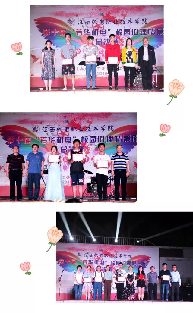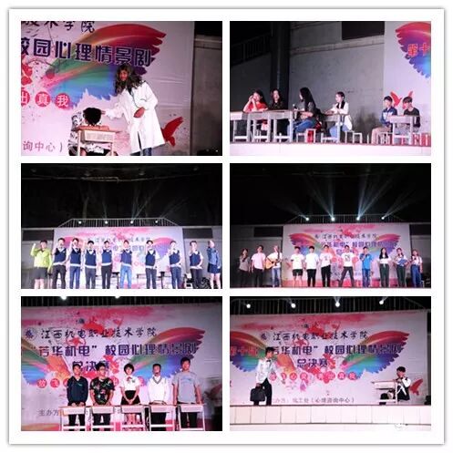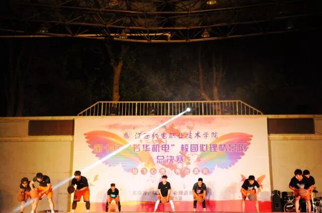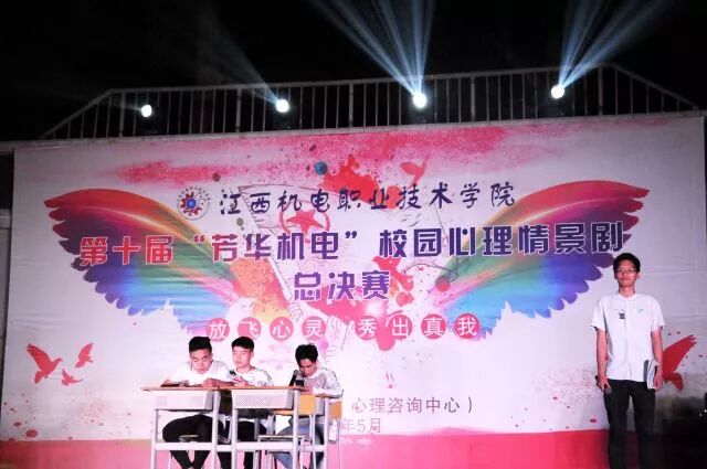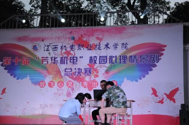 5月23日,由学校学工处心理咨询中心主办的第十届“芳华机电”校园心理情景剧决赛在运动场举行啦~想知道都有哪些精彩内容吗?跟随小编一起看看吧! 学校党委书记聂林水出席本届心理情景剧决赛活动,党办主任金凌云,学工处处长袁彬华,电气工程分院书记徐也可,信管工程分院党支部书记罗建军,材料工程分院书记舒翔,机械工程分院副书记熊昱,学工处副处长张永红,宣传部副部长邵蓓以及高教教研室副主任李冰观看了比赛。 金凌云、邵蓓,教师代表高武、揭仕瑾,兄弟单位江西传媒职业学院心理协会会长李明,江西科技师范大学心理协会会长李栋,以及我校心桥协会会长樊贤担任评委。 大赛围绕“放飞心灵,秀出真我”主题,各二级分院积极参加,认真准备排练,经过预选、初赛选拔,共十二支队伍进入了决赛。进入决赛的心理剧从不同角度不同方面展现大学生活中遇到的各种各样的问题,同学们生动表演赢来了阵阵掌声。 最终,来自17级数控参赛作品《情系机电》荣获一等奖,17级地铁班《低头的我们》、16级地铁1班《我的青春不迷茫》、16级地铁2班《他·她》荣获二等奖,17级计网7班《还不起的债》、17级机电4班《时空旅行》、17级职教本科班《心不再孤单》荣获三等奖,17级焊接班《大熊逆袭记》、17级电设1班《105寝室传记》、17级计网3班《寝室矛盾》、17级计网5班《朋友》、17级计网1班《我们在一起》荣获优胜奖。 接下来就和小编一起来回顾当时的精彩赛况吧~ 《情系机电》真情演绎学校帮助贫困学子圆梦助学故事,让大家真切感受到来自学校这个大家庭的温暖与大爱。 手机党、低头族、游戏迷,现在低头已成为年轻人最普遍的姿势。今天同学们将这一幕搬上了舞台,让大家清醒地认识到成为手机的“奴隶”严重危害。 参赛作品《还不起的债》,剧情引人入胜,男主角忏悔的一跪牵动着全场的心绪,选手们的真情流露真切地告诉大家远离网贷,莫让网贷“贷”走了自己的青春、理想、未来。 寝室生活是大学生活中重要的组成部分,宿舍姐妹情、兄弟情,因为有了他们,才会感到不再孤单。今天同学们用《105寝室传记》与《寝室矛盾》两部作品为你讲述属于他们的寝室故事。 当然,除了上述作品以外,《我的青春不迷茫》、《时空旅行》、《心不再孤单》、《大熊逆袭记》、《朋友》、《我们在一起》等作品都取材于校园生活常发生的故事,通过同学们在舞台上的演绎,充分展现出当代大学生的精神风貌。 紧张的比赛过后,篮球的活力与音乐的魅力调动全场的热情,同时也为本届校园心理情景剧画上圆满的句号。 小小情景剧,温暖你我心。同学们用欢笑与泪水的精彩表演诠释出当代大学生心理成长的历程,映射出现代大学生心理情感世界。谁的青春不迷茫,我们常常会不知所措,但请不要害怕,认清自己的内心,与心对话,保持健康的心理和态度,终会遇见蜕变,绽放自我。